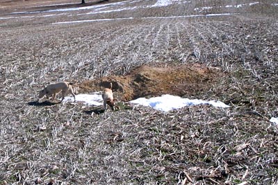 The show ring is all about "breeds," and all about differentiating one breed from another. In the world of the working terrier, of course, the fox or raccoon or groundhog does not care too much what breed the dog is! In fact, the fox or raccoon cannot even see the dog it faces underground, as there is no light inside a den pipe. What the fox cares about is whether the dog can actually reach it at the back of the sette. The good news (at least as far as the fox is concerned!) is that a Kennel Club dog often cannot get very close to the quarry . The reason for this? A Kennel Club dog is likely to have too big a chest.