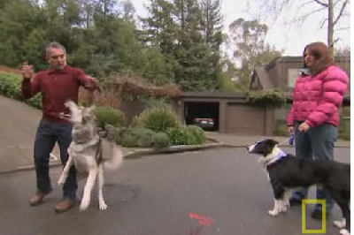 Remember that the owners of this dog have called Millan because this dog is very dog-aggressive and has posed a danger to them and their other dogs in the past!