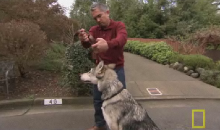 They say they read somewhere that wolves are not really dominant, and that "in nature" wolves live in family units as imagined by Walt Disney. Only in the "artificial" wolf packs created in large wolf-pen enclosures is wolf-on-wolf dominance and aggression ever shown.